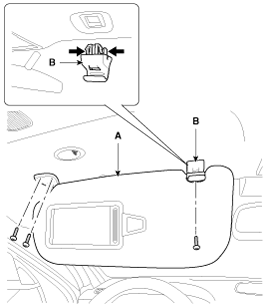 Loosen the mounting screws, then remove the sunvisor (A) and retainer (B).
