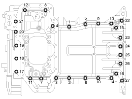 Tighten each bolt gradually in a criss-cross pattern until the final tightening torque has been reached. |
