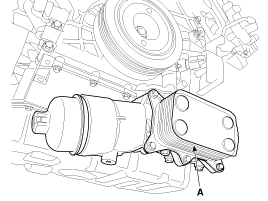 Remove the oil filter & cooler assembly (A).