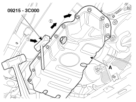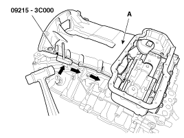 Insert the blade of SST (09215-3C000) between the upper oil