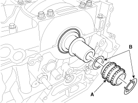 Remove the crankshaft sprocket (A) and friction plates (B).