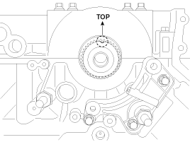 Pull out the oil pump tensioner stopper pin, and make sure tension is set. And confirm the timing chain align mark again.