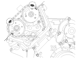 To install the timing chain with no slack between each shaft (cam, crank), follow the below procedure.