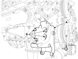 Remove the alternator bracket (A).