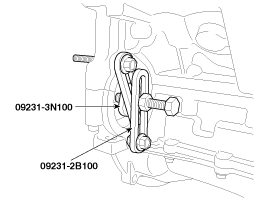 Use the SST(09231-2B100, 09231-3N100) to install the crankshaft pulley bolt, after remove the starter. |
