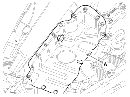 Remove the timing chain lower cover (A).