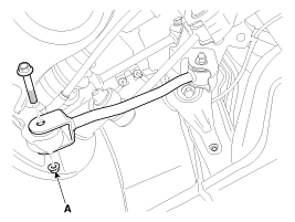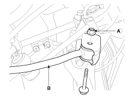 Disconnect the trailing arm (B) from the rear axle by loosening the bolt & nut (A).