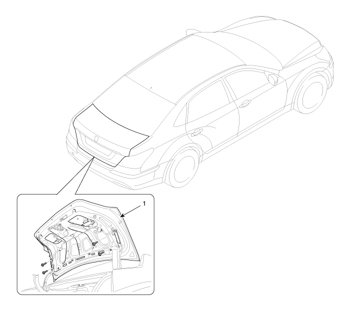 Replacement     • Wear gloves to protect hands from injury.     • When removing and installing the trunk lid, an assistant is necessary. 1. ...