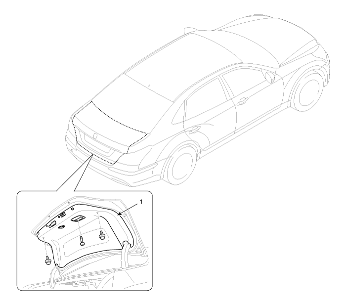 Hyundai Equus: Trunk Lid Trim Components and Components Location - Trunk Lid - Body (Interior and Exterior) - Hyundai Equus VI 2009-2025 Service ManualHyundai Equus: Trunk Lid Trim Components and Components Location