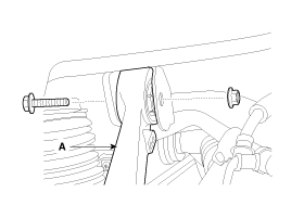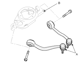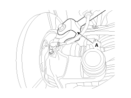 Disconnect the rear front upper arm (A) from the rear sub frame by loosening the bolt & nut.