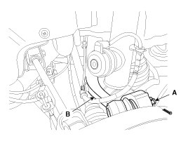 Disconnect the upper arm (A) with the air strut assembly bracket (B) by loosening the bolt.