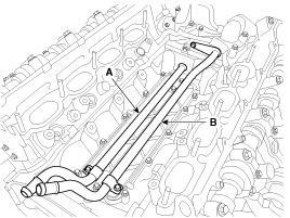Disconnect the radiator upper hose (A) and lower hose (B).