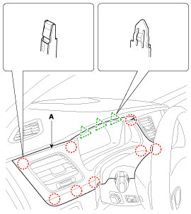 Using a screwdriver or plastic panel remover, remove the center fascia upper panel (A).