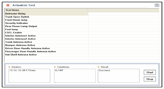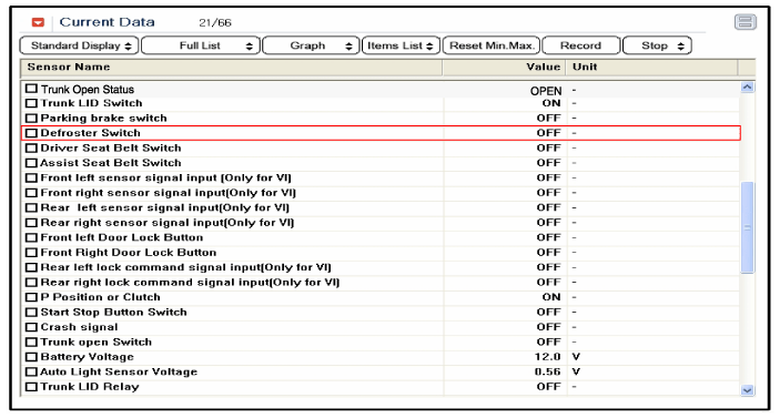 To check the input value of windshield deicer switch in force mode, select option "Actuation test".